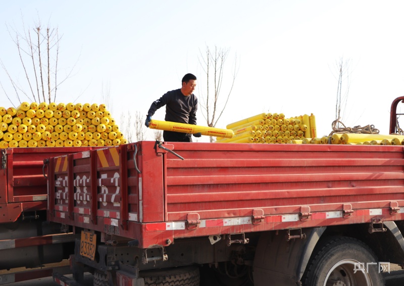 在地膜集中发放点,静宁县农技中心工作人员清点数量、造册登记,装卸工人把一捆捆农膜装上运输车辆,发放工作有序开展。静宁县农技中心主任杨富位说:“为了确保春耕所需物资足量供应,我们陆续调运的地膜已到位,目前正组织向各乡镇免费发放。我们严格按照以旧换新的管理办法,在确保3月底完成顶凌覆膜任务的前提下,实现农业面源污染有效治理。”