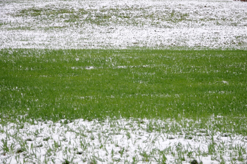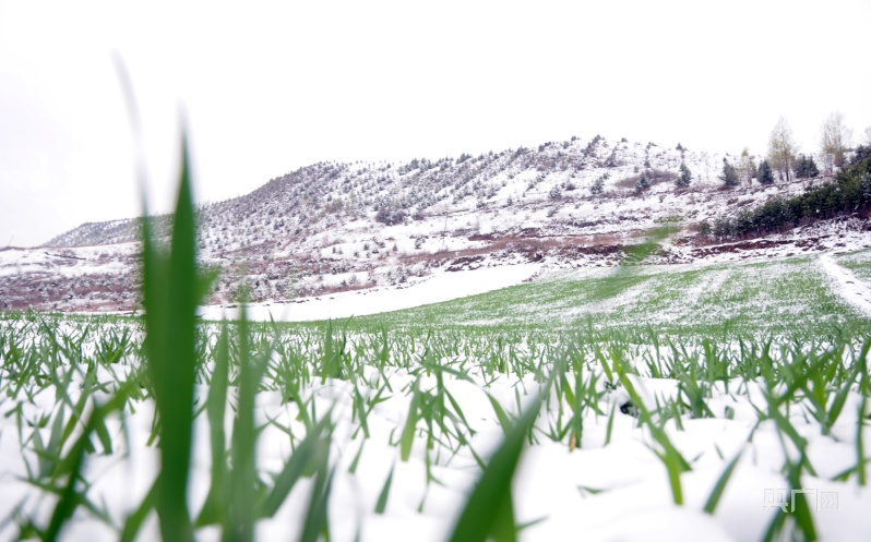麦苗在积雪中茁壮成长(央广网记者 李红军 摄)