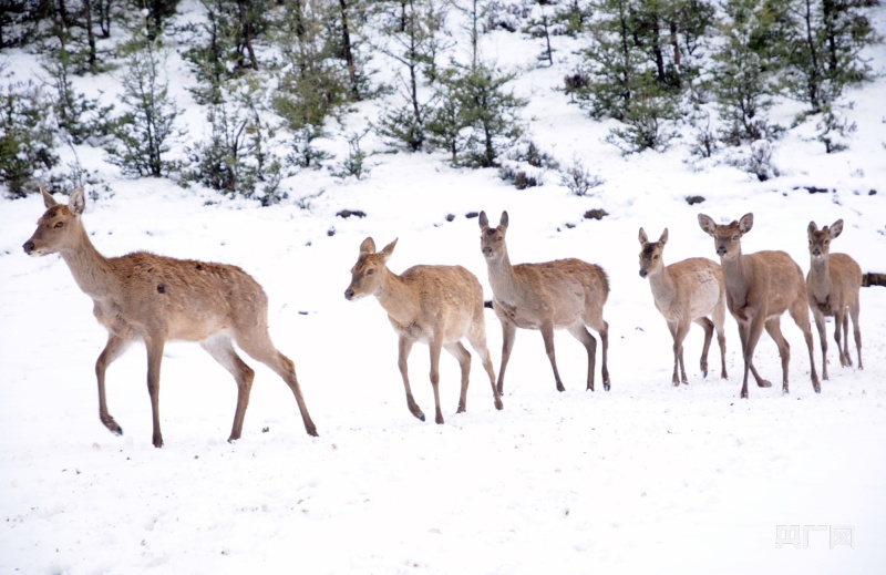 在雪地中奔跑的梅花鹿(央广网记者 李红军 摄)