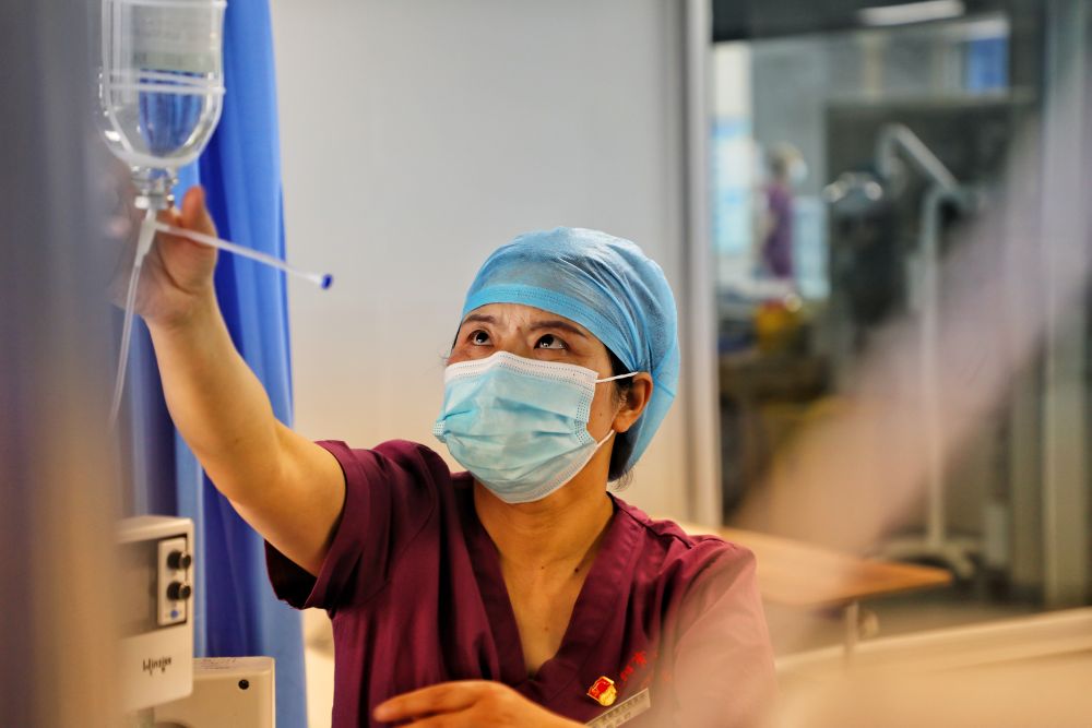 脱亚莉为患者输液场景。新华社记者 张睿 摄