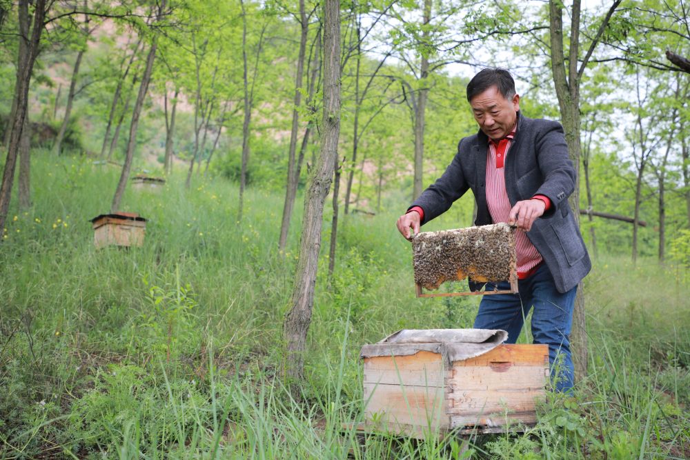 “这些年持续绿化造林,原来光秃秃的山变绿了,树多花也多。”安文祥说,山上刺槐、苜蓿等植物种类不断增加,蜜源变得丰富,蜂蜜又有了销路。