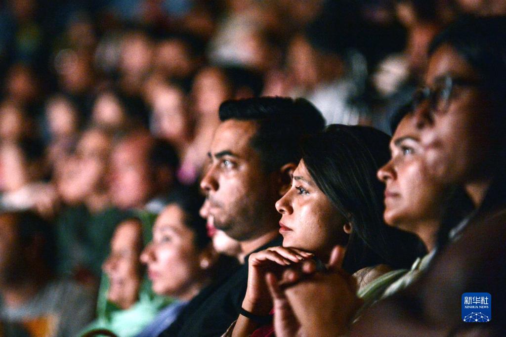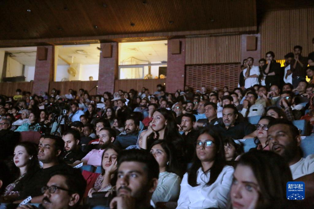 8月3日,在巴基斯坦首都伊斯兰堡,观众在国家艺术委员会剧院观看中巴合拍电影故事片《巴铁女孩》。新华社发(艾哈迈德·卡迈勒摄)