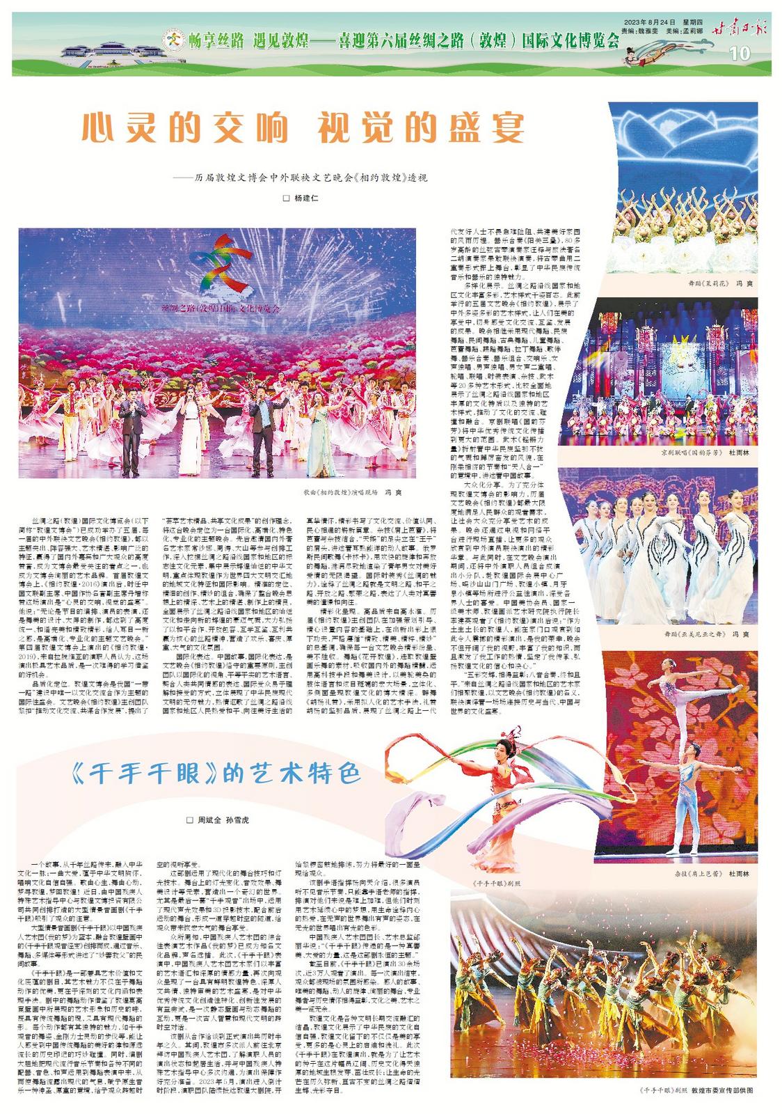 精彩化呈现。高品质来自高水准。历届《相约敦煌》主创团队在加强策划引导、精心设置内容的基础上,在出新出彩上狠下功夫,严格遵循“精致、精美、精粹、精妙”的总基调,确保每一台文艺晚会精彩纷呈、美不胜收。舞蹈《花开敦煌》,选取敦煌壁画乐舞的素材,吸收国内外的舞蹈精髓,运用高科技手段和舞美设计,以美轮美奂的肢体语言和炫目斑斓的宏大场景,立体化、多侧面呈现敦煌文化的博大精深。群舞《胡杨礼赞》,采用拟人化的艺术手法,礼赞胡杨的坚韧品质,展现了丝绸之路上一代代友好人士不畏急难险阻、共建美好家园的风雨历程。器乐合奏《阳关三叠》,80多岁高龄的丝弦古琴演奏家汪铎与旅法著名二胡演奏家果敢联袂演奏,将古琴曲用二重奏形式搬上舞台,彰显了中华民族传统音乐和器乐的独特魅力。
