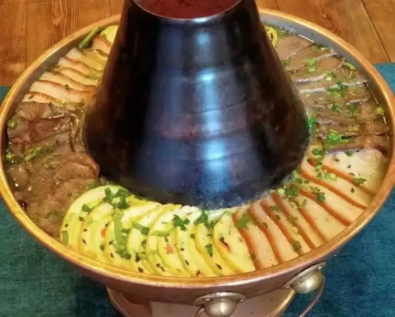 特色暖锅子是以铜制的高脚锅制作,圆锅内装入肉类、夹沙、丸子、蔬菜等十四种原材料、佐以调料,配有鸡肉、猪棒骨熬制而成的高汤,文火缓煨,逢年过节一家围桌而食,香味浓郁,故取名“全家福”。永昌炉盔子历史悠久,是极具特色的传统食品。以前逢年过节,人们都会把它当作是走亲访友的馈赠佳品。
