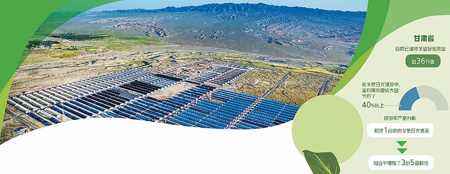 位于祁连山北麓的河西走廊地区光热资源充沛、昼夜温差大、病虫害少,具有资源节约、产出高效等明显优势。近年来,甘肃立足河西走廊资源优势,通过开发戈壁沙漠等未利用土地资源,向戈壁要耕地、向节约要水源、向科技要产量、向光热要品质,充分利用大田种植节约的水资源,建设现代高效戈壁设施农业,实现了“不与粮争地,不与地争肥”,目前已建成戈壁设施农业近36万亩。